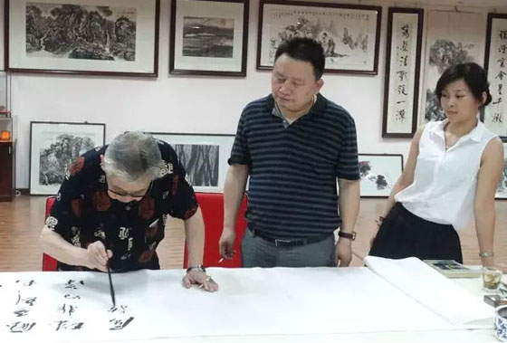 2014年7月,张善平老师在武昌红巷艺术城名家典藏艺术机构创作书法