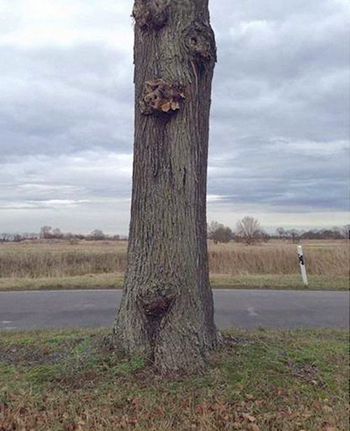 在公路旁找到合适的大树之后,Daniel Siering和Mario Schuster便使用塑料布缠裹树干,而后用喷漆在塑料布上喷绘出周围的景观,达到让被塑料布缠裹的树干隐形的效果,进而让大树“飘浮”在半空。