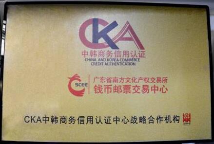 2015年12月21日,中韩商务信用认证合作签约及授牌仪式在广州举行,南方文交所以及旗下的南方文交所钱币邮票交易中心被授予“CKA中韩商务信用认证中心战略合作机构”的认证资格。