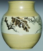 婺窑釉下褐彩梅花尊 陈新华,号华泥居士,1955年出生于浙江金华。高级工艺美术师、中国陶瓷设计艺术大师、浙江省工艺美术大师、浙江省非物质文化遗产婺州窑传统烧造技艺代表性传承人、浙江青瓷中青年十大名师、浙江省青瓷行业协会副会长、金华婺州窑陶瓷研究...