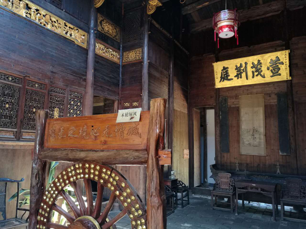周敦亮总经理向郭建介绍博物馆的民俗藏品