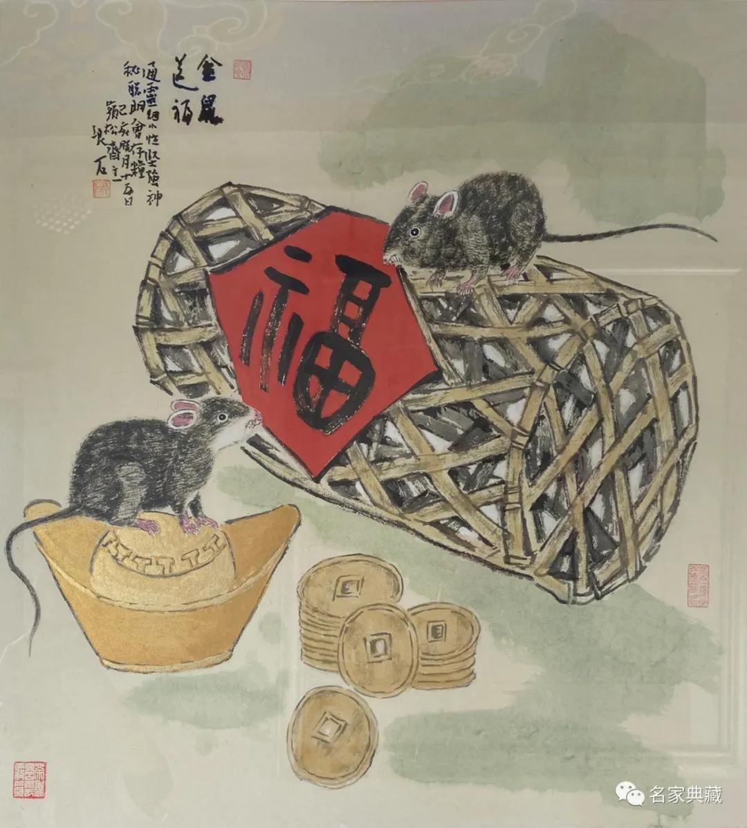 武汉名人协会画家、随州市美术馆馆长胡清菘代表协会为武汉市社会福利院创作的国画作品“金鼠送福”