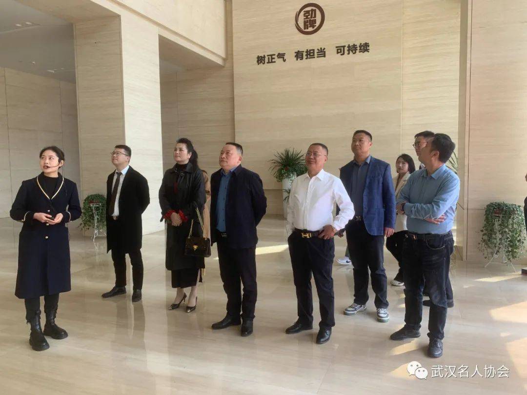 武汉名人协会会长郭建等一行在劲牌有限公司总裁王楠波、战略新品事业部总经理徐新济、外联部经理王黎、驻武汉办事处主任邹鑫等负责同志的陪同下,先后参观了劲牌有限公司科研品牌实验室、智能化生产车间、劲牌历史博物馆等研发、生产及展览场所,聆听了劲牌公司的发展历程,感受到了中国劲酒品牌的骄人业绩和风采。