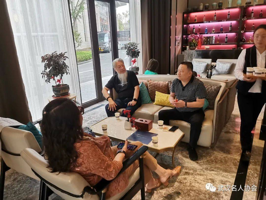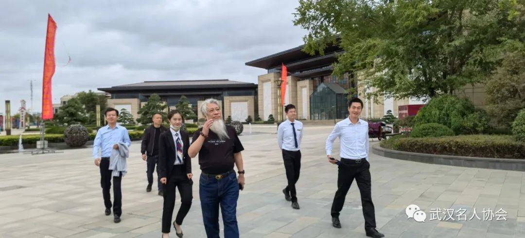 2022年10月4日上午,重阳节。武汉名人协会会长、名家典藏艺术机构董事长郭建,副会长廖波、刘俊杰,湖北省美术馆原馆长、著名书画家丁竹君等一行十余人到武汉市蔡甸区中法生态城“跨越百年时空,承载热血奋斗历程的百年报刊馆”参观学习,并与同行的社会文化界人士在“知音盛棠”墅院组织采风联谊活动,慰问节日期间上岗的老员工。