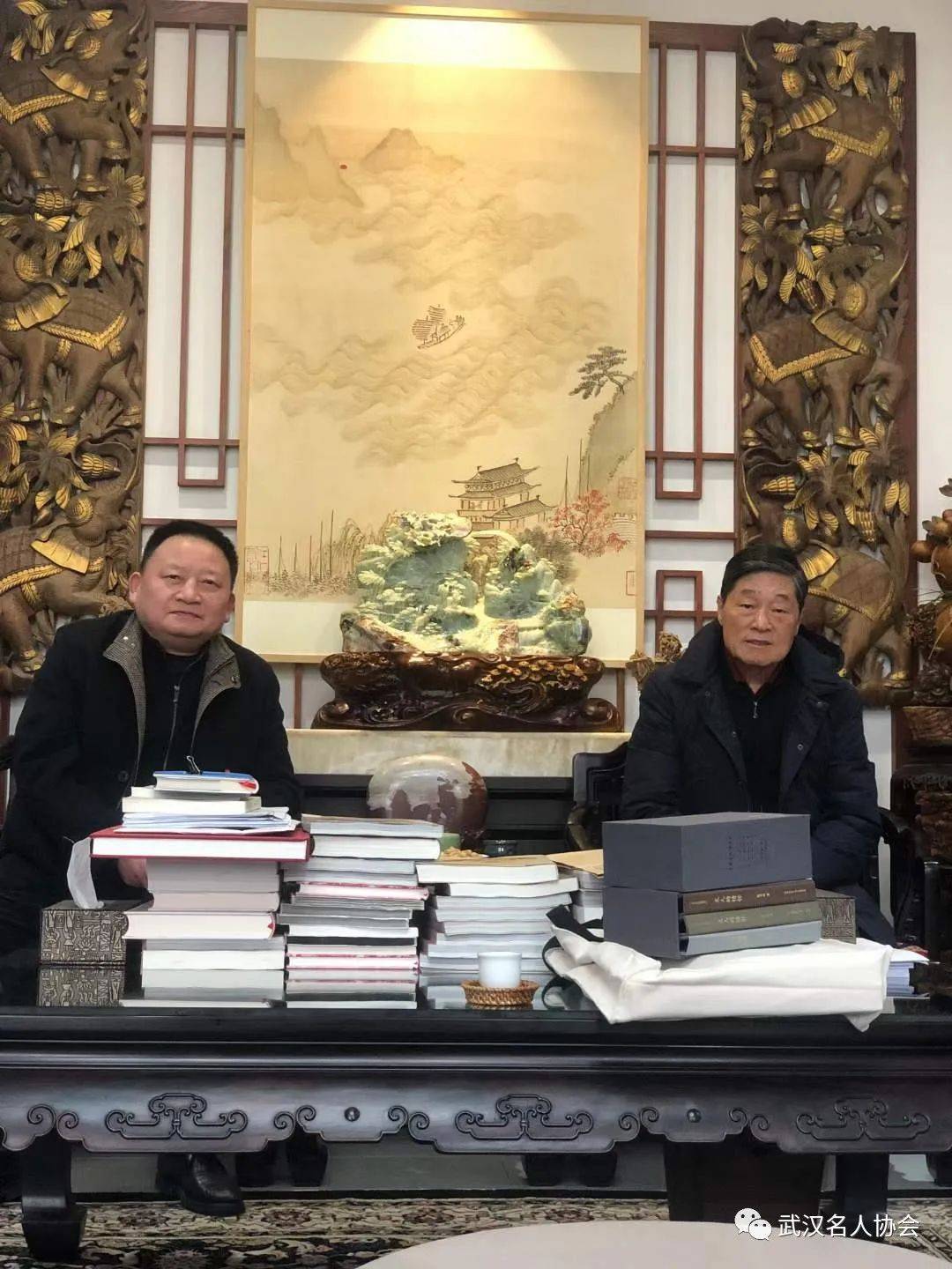 2023年1月6日下午,武汉名人协会会长、名家典藏(武汉)文化艺术传播有限公司董事长郭建在新年到来之际专程前往武汉东湖龙潭书院,拜访著名作家、湖北省中华文化促进会主席熊召政。