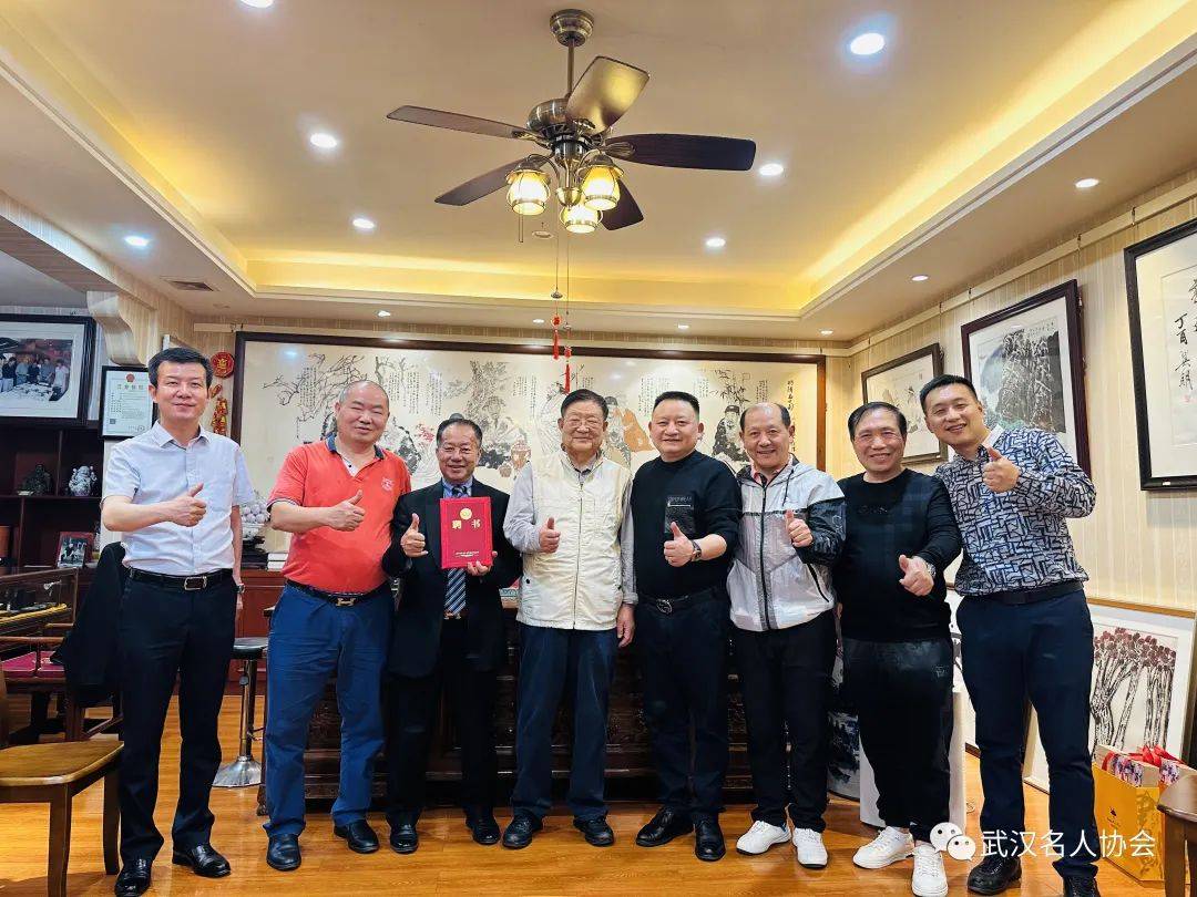 郭建会长与正在协会名家典藏馆参观指导工作的湖北省人民政府原副省长、武汉名人协会首席顾问、著名国学家、书法家韩忠学先生热情接待并向郭义先生颁发了荣誉聘书,郭先生在武汉的部分新老朋友见证了这一具有特殊意义的活动。