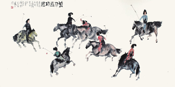 彭先诚   人物   马球图    136x68cm
