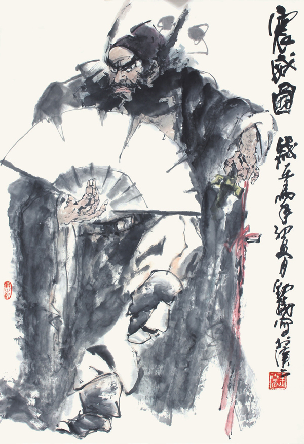 菅金尧(1947-2009),曾任中国书画研究会理事,国家一级美术师,于2009年病逝。作为汉口码头文化中代表画家之一,菅金尧被推认为实力派画家。他早期从事西画创作,后转画水墨画,其作品既吸收了中国画书法、诗歌等元素,又融合了西画造型、用色等方面的特点。古代名人钟馗、张旭、杨贵妃、达摩等为其主要作画对象。
